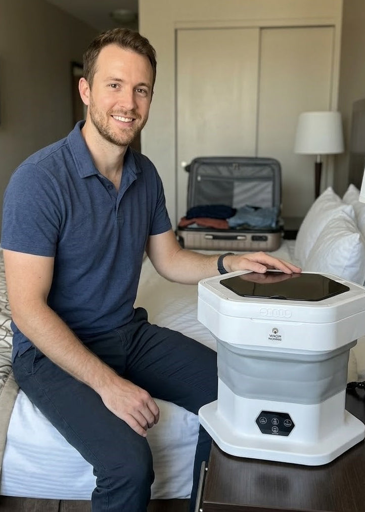 Most people run a full washing machine for a handful of items. It wastes water, energy, and time. Wash Nomad is built for the way people actually do laundry - small loads, on demand, wherever you are.
