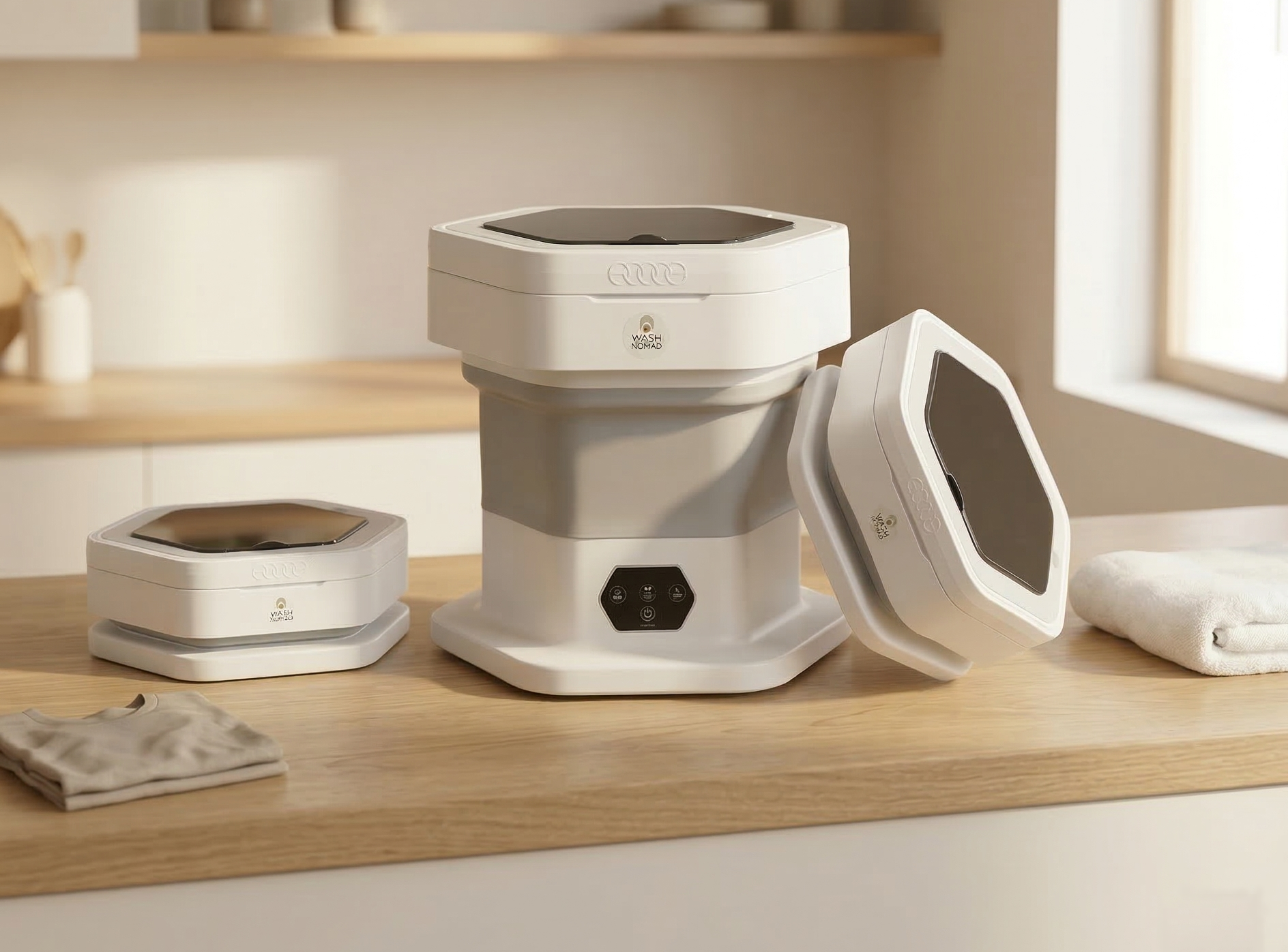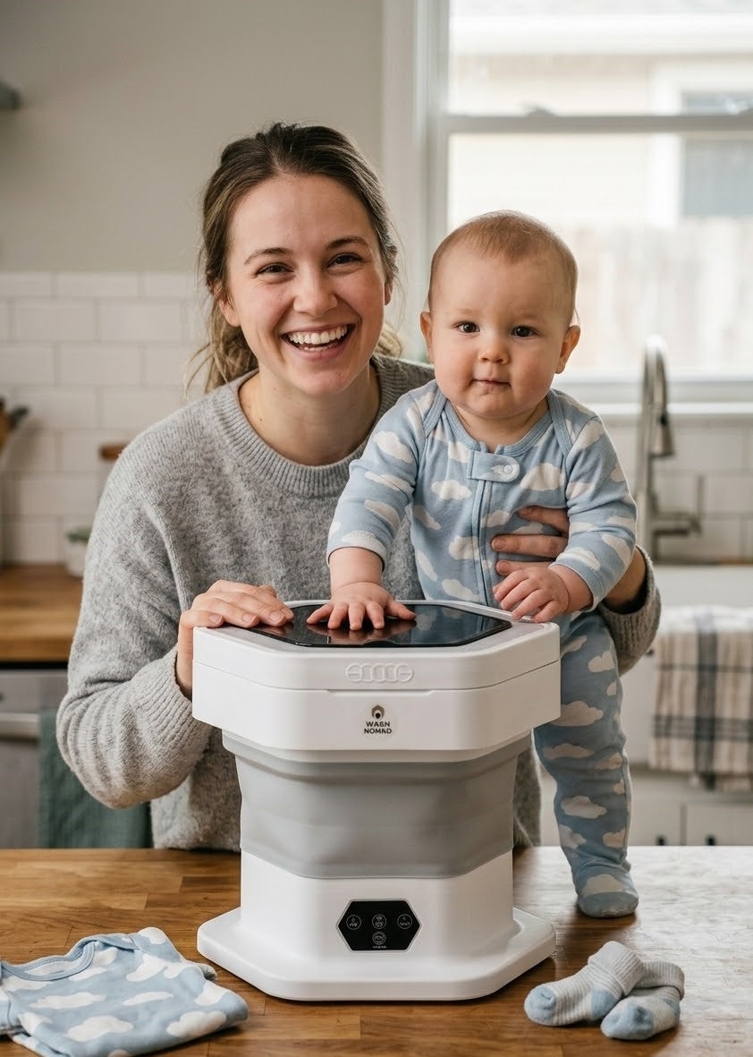Wash Nomad has a real 12L capacity, perfect for small daily loads. In one wash you can clean items like 3 baby outfits, 5 pairs of underwear, 10 pairs of socks, 2 T-shirts, 3 hand towels, or 2 workout outfits.